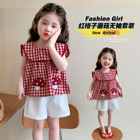 1*4下载视频“M20红格子蘑菇无袖套装”
